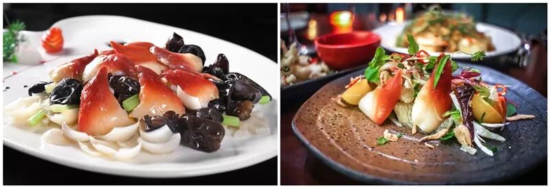 所以,我们在生鲜超市里见到的那些红白相间的北极贝,其实已然是熟的了。这也是许多人难以接受刺身,却独爱北极贝的原因。熟冻的北极贝,解冻后可以直接食用,因为价格相对亲民,常常也出现在回转寿司店里。当然,口感清爽的北极贝几乎是个百搭的食材,同样胜任中式菜肴。色泽诱人的“熟冻”北极贝 | stock.tuchong.com