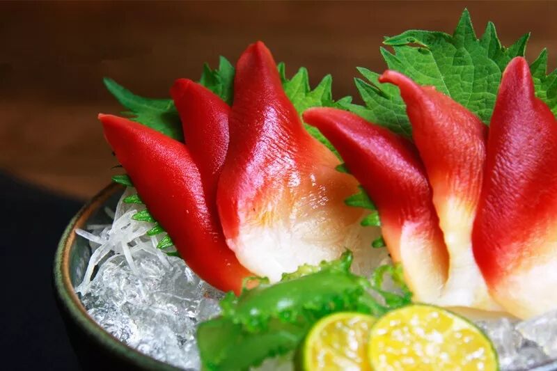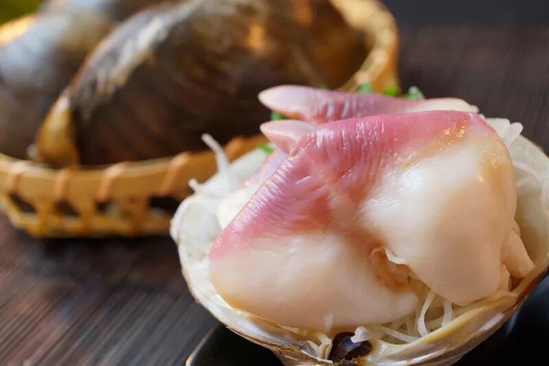 北寄貝最通常的食用方式就是“生吃”,常常现身于高级些的传统日料店,有时店家也会称它为“活北极贝”。冬季,也是吃北寄貝的最佳时节,北寄貝的贝足、贝柱、外套膜都可以食用,而浅灰褐色的肥嫩贝足的出镜率最高,口感爽脆而回甘,清鲜中带着狂野的海洋气息,常用于刺身和握寿司。