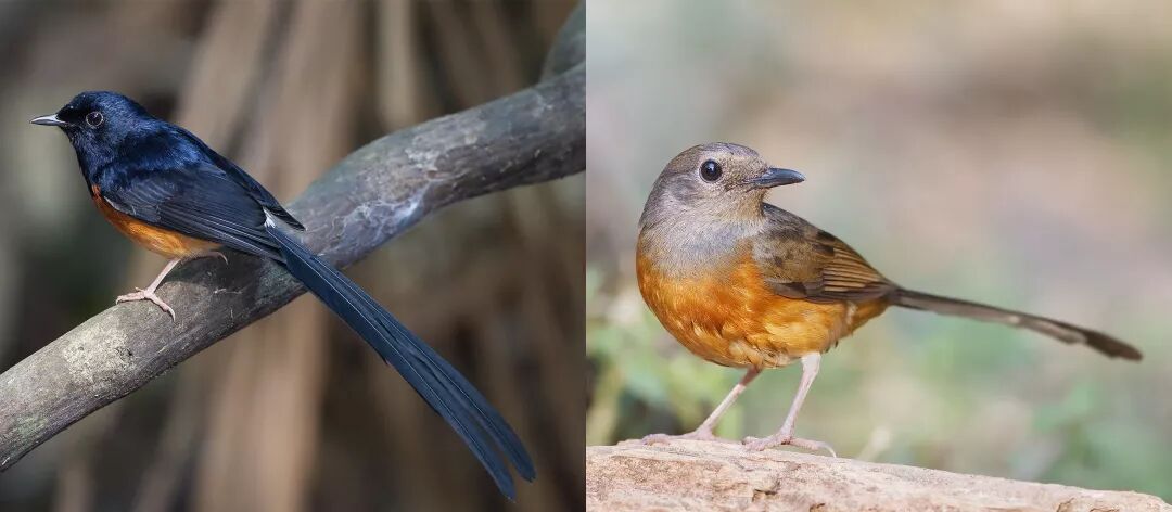 白腰鹊鸲,左雄右雌。图片:JJ Harrison