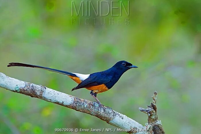 这个角度可以看到白腰鹊鸲的“白腰”。图片:Ernie Janes / NPL / mindenpictures