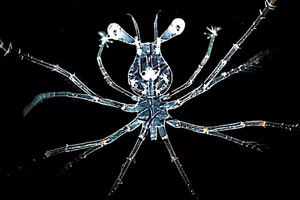 你是否也想像哈利波特一样穿上隐形衣去图书馆看禁书,去禁林夜跑,去厄里斯魔镜前打卡?想隐形的人常有,而隐形衣不常有。想隐身或许可以参考一些小透明,看它们如何在身体上做文章。有些小透明对自己挺狠的。光通过生物组织的衰减程度是与厚度成指数相关的。什么意思呢?如果光穿过1厘米厚度的组织后,衰减40%,组织厚度增加为2厘米后衰减64%,至3厘米厚度时则衰减78%。相反地,如果厚度减小到1毫米,则光的衰减仅为5%。因此,一些小透明们就利用这一原理,通过极限地扁平化自己的身体来达到透明状态,例如栉水母、淡水水蚤、叶形幼体等。叶形幼体(phyllosoma)指无螯下目下一些动物的幼体阶段。图片:amicecorp / flickr