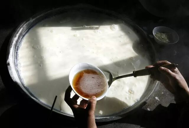 甜咸口味豆腐脑除了地域习惯的差异,最重要的其实源于点豆腐的凝固剂不一样。滤渣并煮沸后的豆浆中充满了蛋白质,加入凝固剂设法使蛋白质发生凝聚形成而形成胶状物,发生聚沉现象,最后使其与水分离。做豆腐脑的功夫,都在人看不见的地方,拣豆、磨浆、熬汁、点豆腐,每个环节都要仔细小心,说起来简单轻松,可真做起来却是又费精神、又费时间的。