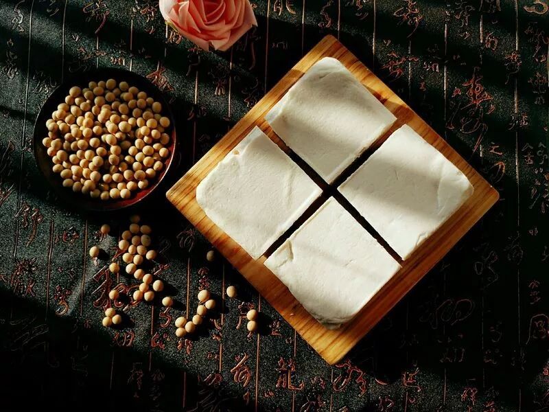 豆腐就是将豆腐脑放入模具中压实、凝固成型之后的样子。不光是黄豆,绿豆、黑豆这些蛋白质含量高的豆类其实都是可以做成豆腐的,只是因为黄豆乳白色的豆浆和傲人的产量胜出而一举成为做豆腐的首选。