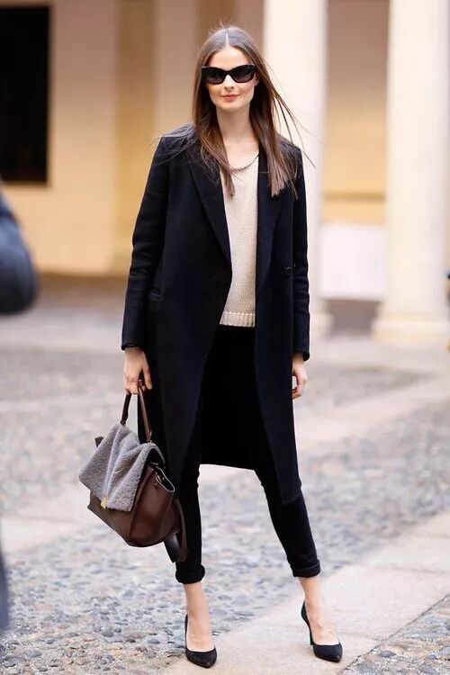 而线条简洁的黑色大衣,很适合需要穿得利落干练的人士。