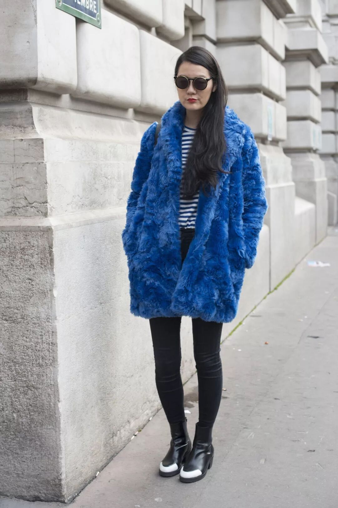 彩色的皮草大衣其实很活泼可爱,但可能需要突破一下我们的舒适区。用黑白色系搭配不太拿得准的彩色,是万能的法则。