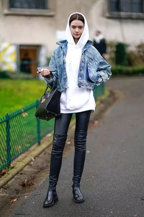 搭配卫衣+直筒牛仔裤+平底牛津鞋,舒适又帅气。