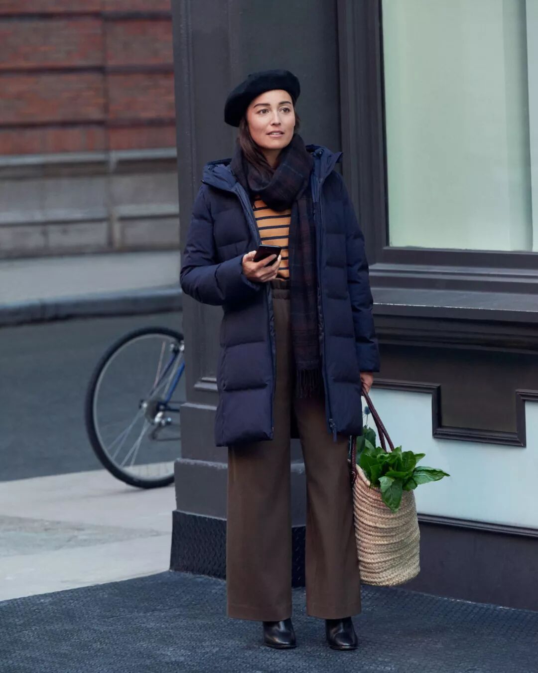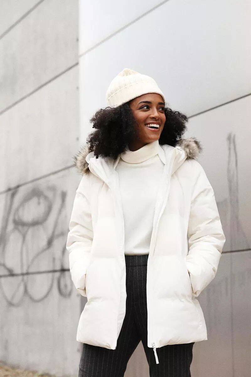 哑光面料线条简洁的羽绒服,搭配简单经典却不失精致的单品,穿着也沉稳大方不俗气。