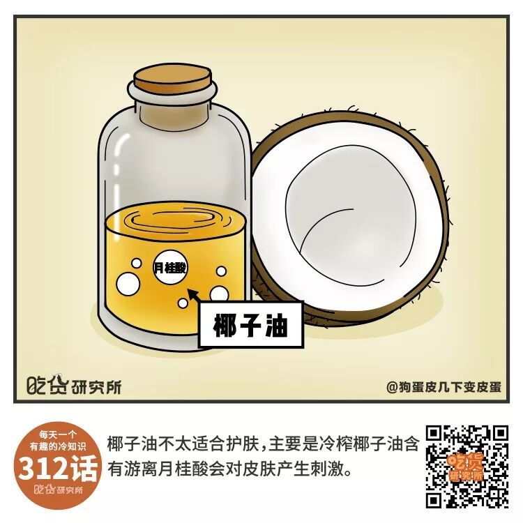 近年来冷榨椰子油受到大家的追捧,但事实上,它并不适合用来护肤!主要是冷榨椰子油含有游离月桂酸会对皮肤产生刺激。不过椰子油的护发效果倒是不错。对于各种发质,椰子油都有防止梳理损伤的作用。但其实它跟其他护发产品的原理类似,就是能在头发表面形成润滑膜,减少毛皮之间的摩擦。想护发,没必要非要用椰子油。