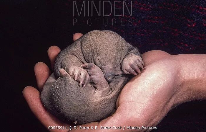 还没有长出刺的小针鼹。图片:D. Parer and E. Parer-Cook / Minden Pictures