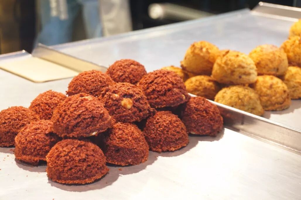 椰子狂人千万不要错过,红丝绒、巧克力、香草等各种口味的现烤椰蓉球,看这个卖相就根本走不动路啊!