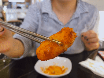 芝心年糕在铁板上熟成了外焦内糯的风味,一口下去芝士成功拉丝,幸福感爆棚。