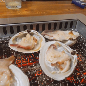 海鲜直接在炭火上烧烤,锁住了食材的原滋原味。烤熟后的蛤蜊带着爽口的汤汁,蘸上调料后肉质韧劲十足,一口下去肉汁喷薄而出,集海鲜的肥、嫩于一身。