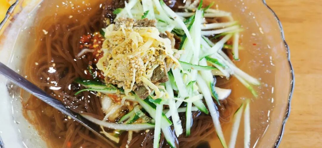 作为一个无辣不欢的四川人,却在延吉喜欢上了令人胃口大开的酸甜口,冷面就是其中的典型代表。在顺姬冷面家吃到的这一碗,开动前一定要先喝一口冰凉酸甜的高汤,用玉米面或荞麦面制作的面条入口爽滑又有嚼劲,配上牛肉、黄瓜丝浇头一起下肚超满足。