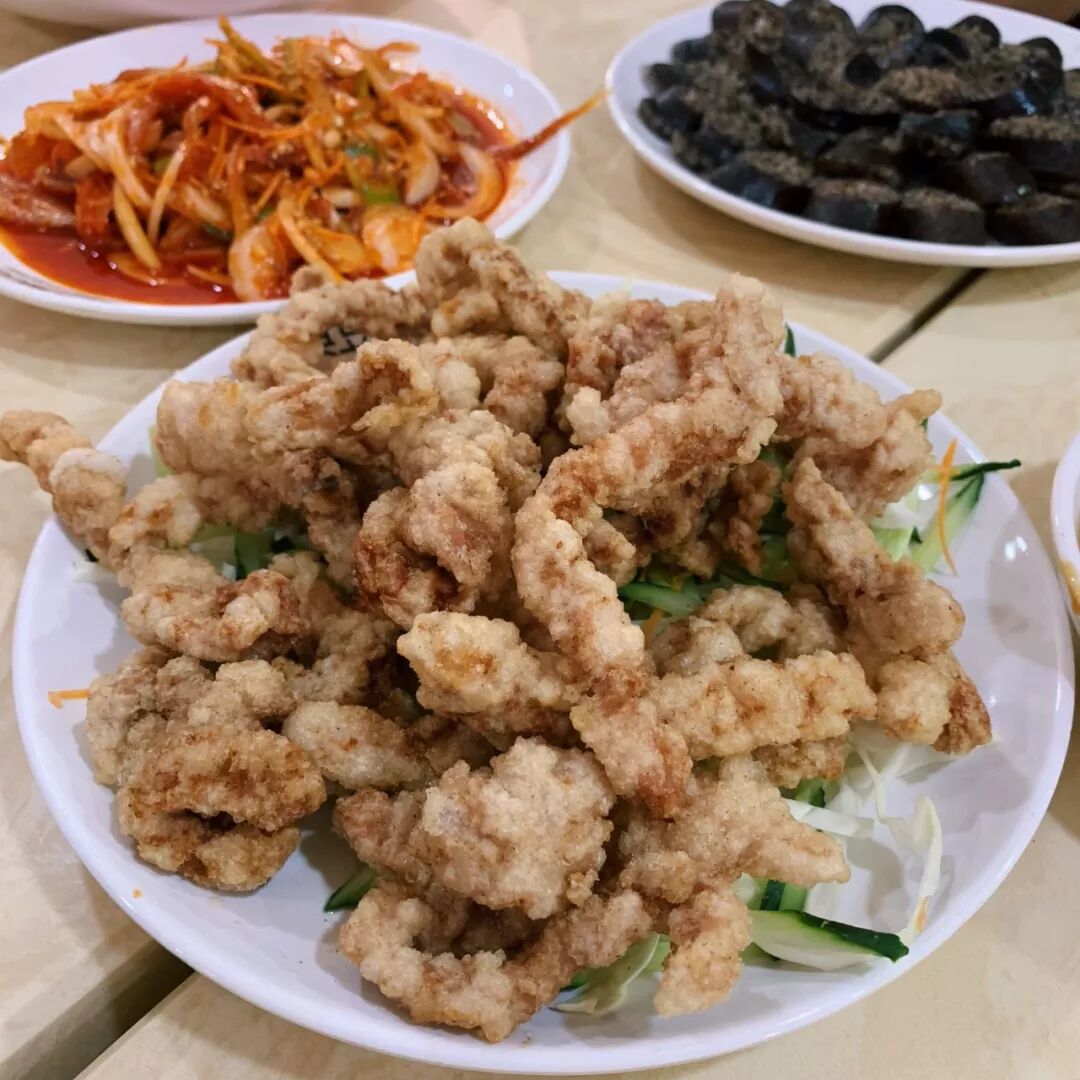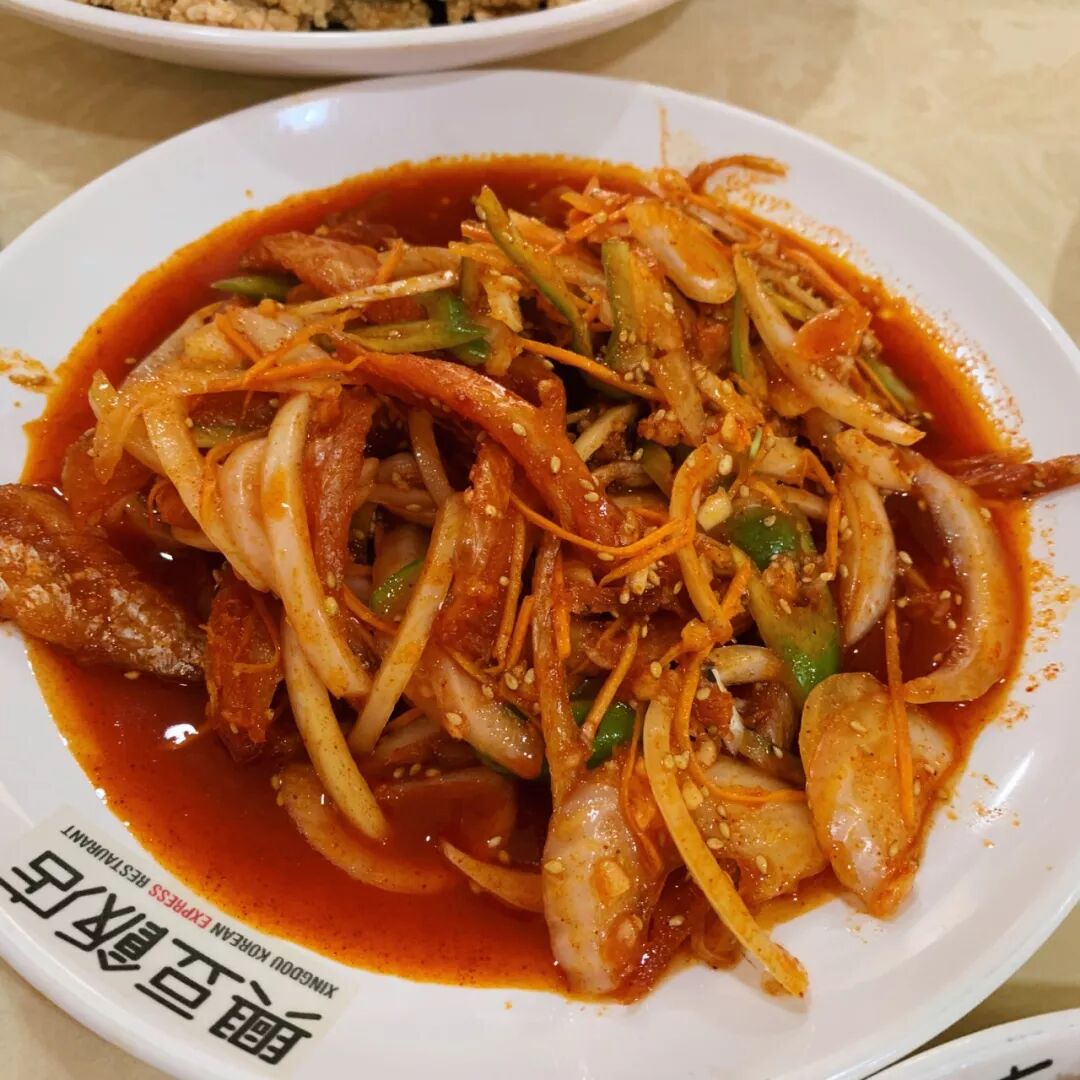 兴豆饭店是本地朋友力荐的性价比食堂,4个人点了6个菜,分量惊人,一共吃了200块不到,深得东北菜量大物美的真传。强烈推荐糖醋肉!口味有点像锅包肉的变形,但是切成条形的糖醋肉更易入口,炸得酥脆后蘸上调制好的糖稀,咸甜口万岁!