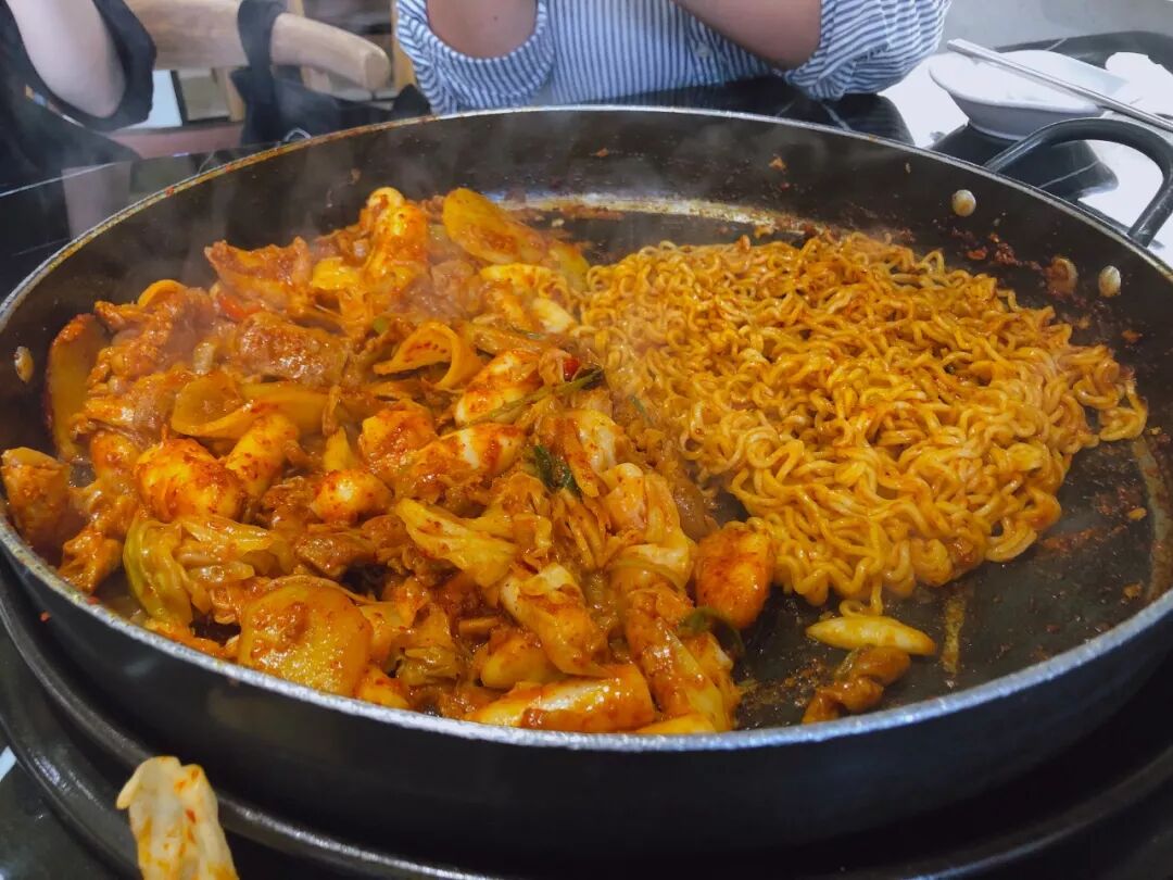 延边大学门口的这家觅思特铁板鸡在当地人气很不错。腌制后的鸡肉爽滑多汁,洋白菜炒到刚好断生,酱料辣中带甜,搭配在一起有种甜蜜的回甘。