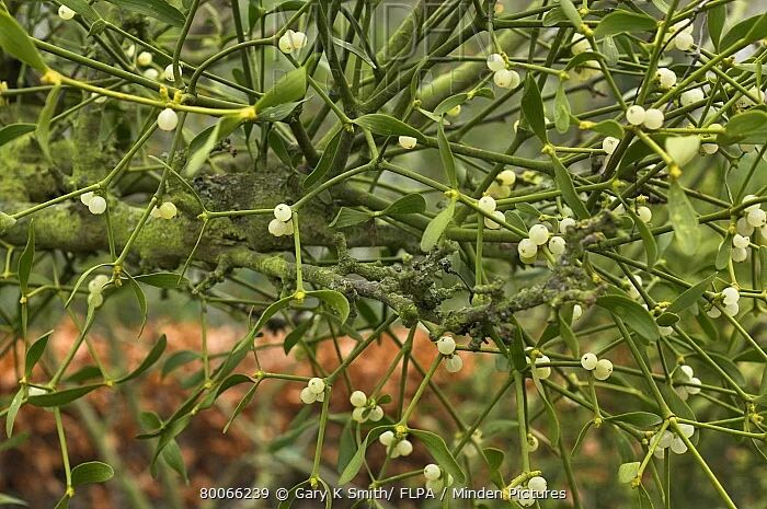 ,大概可以这么说啦。一般的树不是要从土地里吸收水和养分嘛。”鼹鼠捡起一根槲寄生枝条,“槲寄生呢,是从树里吸取水和养分。就像你肚子里的寄生虫是从你体内吸取养分一样。”