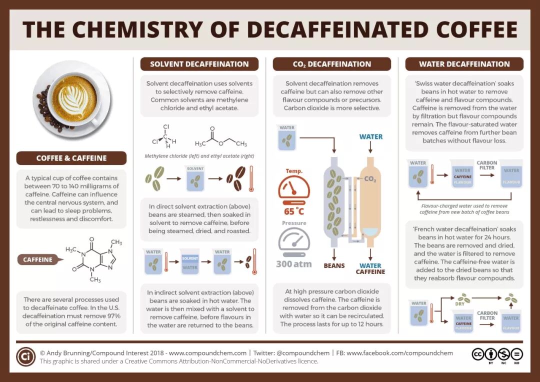 咖啡因溶于水,但水不会只挑咖啡因溶解,它会不管三七二十一把咖啡豆里其它的美妙味道也一并溶解了。不能泡水,但还有别的有机溶剂可以——比如二氯甲烷和乙酸乙酯。