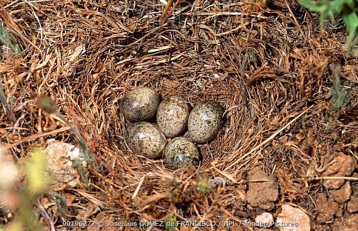 草原百灵的巢穴和卵。图片:Jose Luis GOMEZ de FRANCISCO / NPL / mindenpictures