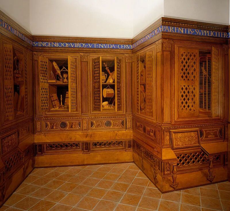 文艺复兴时期由细木镶嵌画装饰的墙壁。图片:Francesco di Giorgio Martini and Giuliano da Majano / Metropolitan Museum of Art