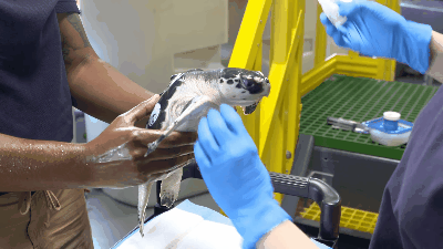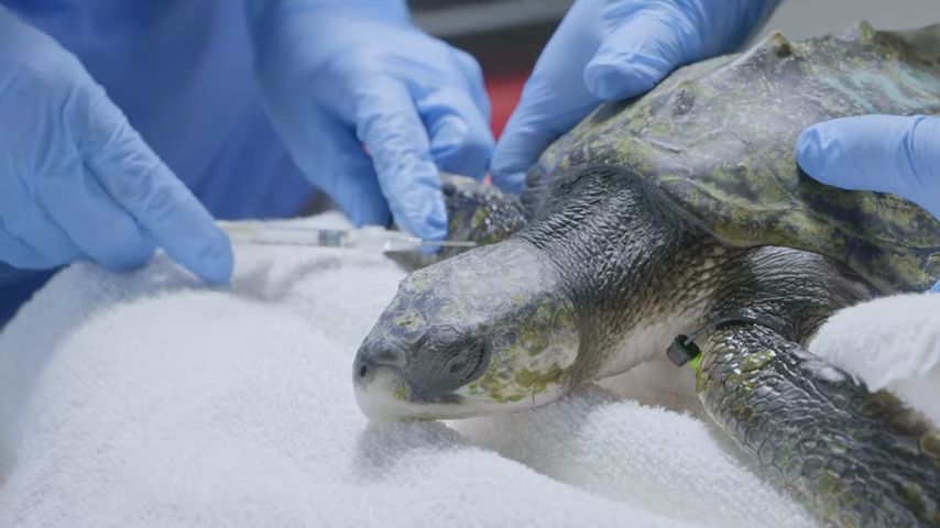 给海龟检查身体。图片:National Aquarium