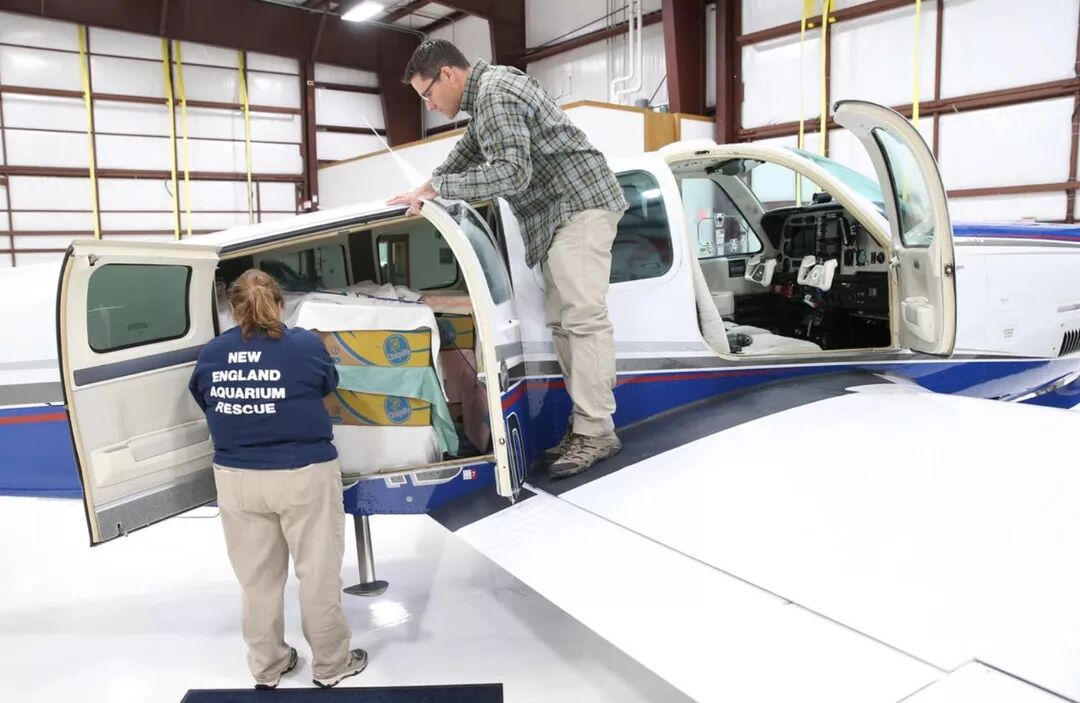地面运输可能花两三天,飞机运送有助于减轻受伤海龟的压力。图片:Boston Herald, Nicolaus Czarnecki