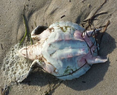 搁浅的海龟,它还活着。图片:turtlejournal