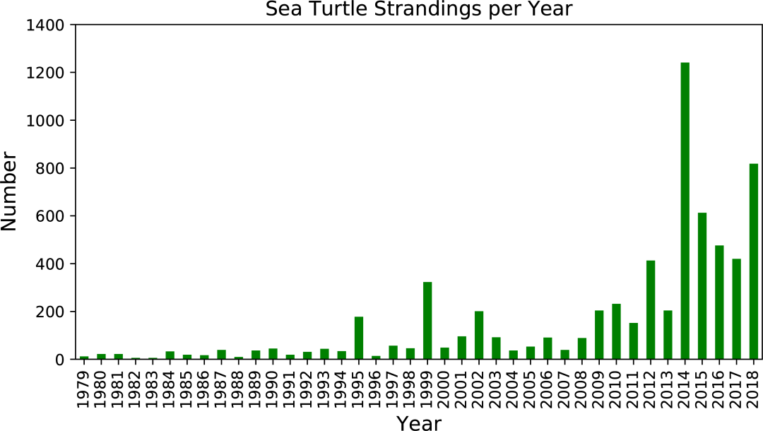 搁浅海龟的数量在增加。图片:Liu, X., et al. / PloS one(2019)