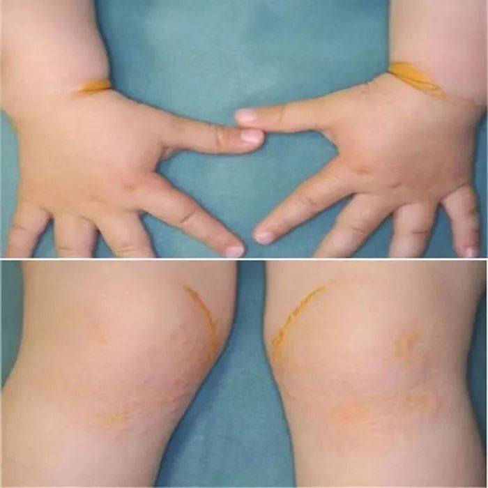 3岁男童的手部及膝部黄色瘤 | 文献[6]