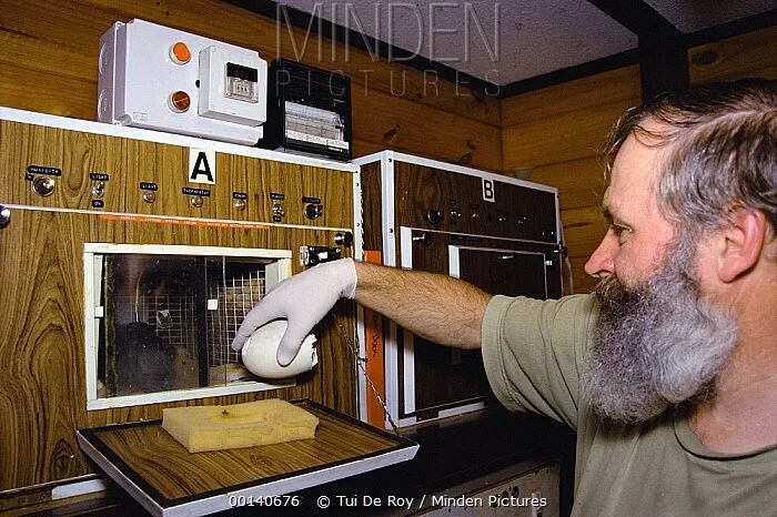 Otorohanga繁育中心,工作人员正把几维鸟蛋壳从孵化箱里拿出来。图片:Tui De Roy / Minden Pictures