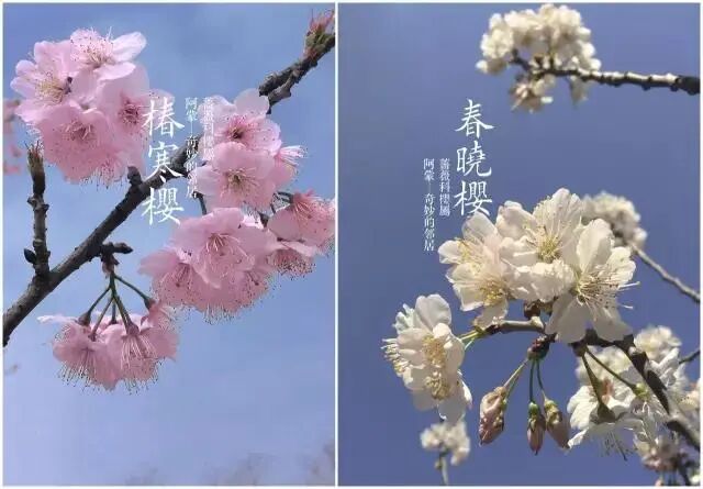 杂交所得的‘椿寒樱’和‘春晓樱’。图片:阿蒙