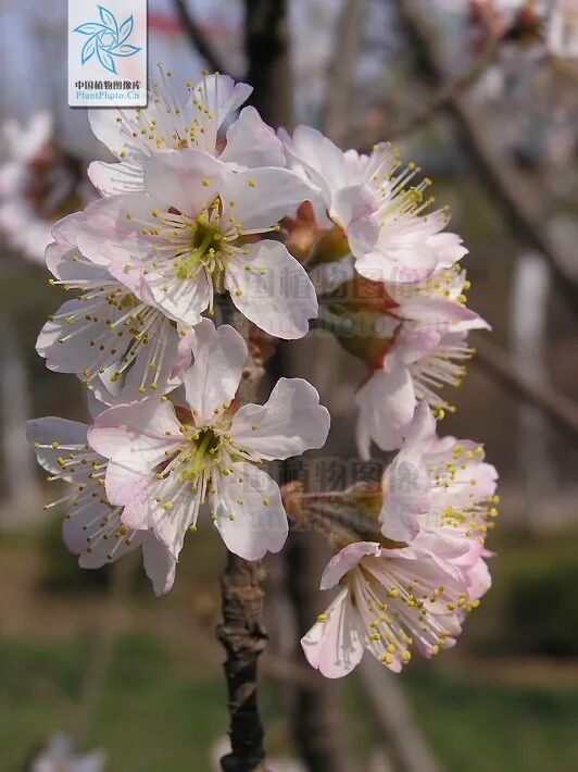 樱亚属最大的特点便是花托长成长筒型,花梗很长,三朵以上聚生成伞形花序,这与李属里其他种类有较大的差别。当春天我们看到满树春花的时候,如果它的花梗纤长,那必定是樱类。