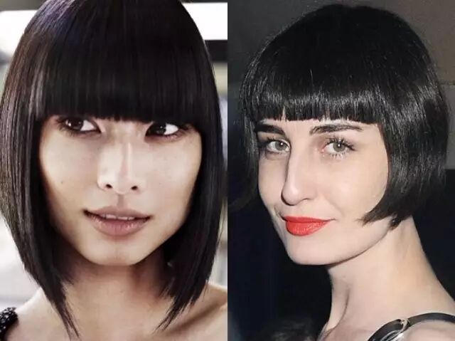 厚重的齐刘海儿根据个人气质可以很时髦,也可能显土气。图左刘海较窄,收脸,图右刘海儿宽,脸大别尝试。