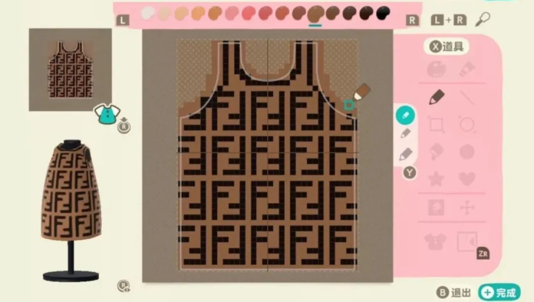 与现实中的自己穿同款单品,以及在游戏中穿着日常生活中可能负担不起的奢侈品单品,都切实戳中了人们的心理,任谁都会多留意一眼,其宣传推广的作用不言而喻。除了宣布虚拟套装上线之外,Valentino官方微博两天连发两条微博,提供虚拟造型目录、附下载代码,并打上了“集合了动物森友会”“AnimalCrossing”两个相关tag,毫不避讳对这次营销的重视程度。与Valentino的官方行为不同,目前出现在动物森友会中的许多其他奢侈品品牌,多是设计师对品牌秀场的“搬运"或者游戏玩家的自发行为。虽然目前游戏中支持DIY,但是Gucci、Fendi等LOGO以及单品的使用,都不是官方授权的哦。支持玩家DIY