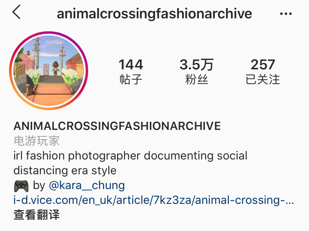 @animalcrossfashionarchive 是今年随着游戏热度上升而新创建的账号,里面不仅有Kara Chung自己的作品,也有她收到的来自其他玩家的作品。账号的粉丝量算不上太多,但已经收到来自Valentino这样一线品牌的合作邀请,影响力不容小觑。@animalcrossfashionarchive