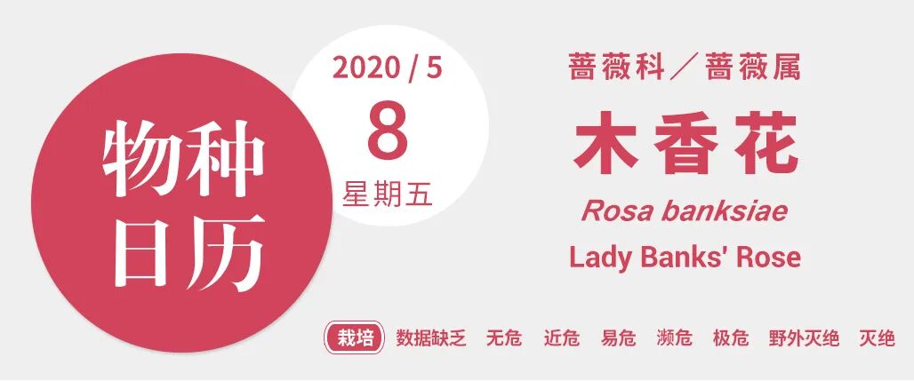 木香花(Rosa banksiae)是蔷薇科蔷薇属的常绿攀援灌木,它原产于我国西南地区,在山间灌丛或是路边溪畔都能一睹芳容。比起蔷薇和月季这两位同属的亲戚,木香花的美貌也是不遑多让,加之芬芳馥郁,因而得名木香。