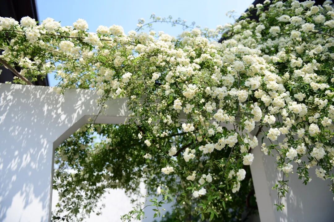 而一些年份久远的木香花,就连垂下的枝条上也绽满了万簇琼英,幽幽地散发着沁人心脾的芳香。明人王象晋在《群芳谱》中曾以“香馥清远,高架万条,望若香雪”,来描述木香花盛放的壮观景象。