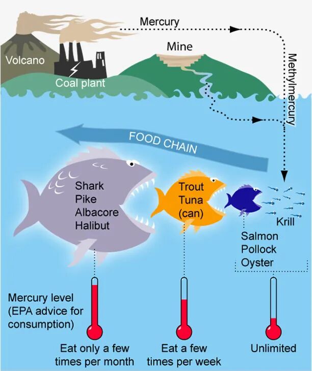 通常情况下,食物链等级越高、寿命越长的生物,其体内有毒物质的含量就越多。在漫长的“鱼生”中,汞等重金属渐渐在长寿鱼体内累积下来。研究表明,长寿鱼组织中有机汞的含量在0.30-0.86 mg/L之间,是其他食用鱼平均有机汞含量的3~10倍,非常接近1976年美国政府对可食用鱼类汞含量设定的安全上限1 mg/L。
