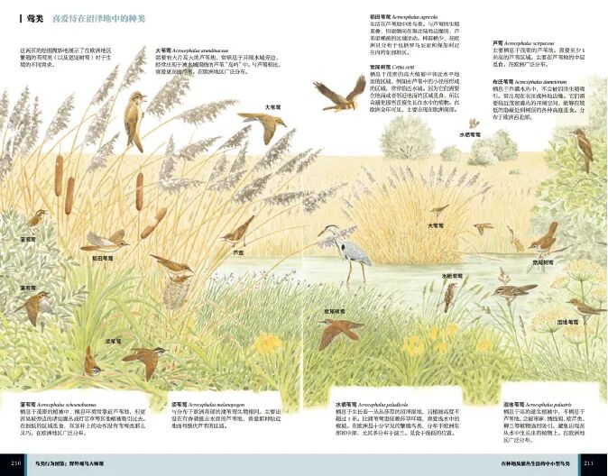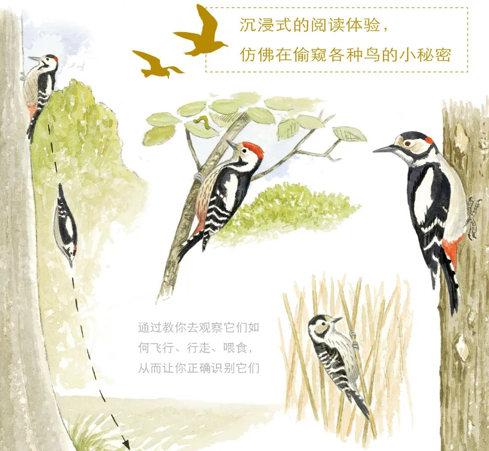 1000多张手绘插图,将鸟类的行为融汇到环境中。在这看到的不再是端正的“证件照”,而是更接近实际观鸟体验的行动瞬间。