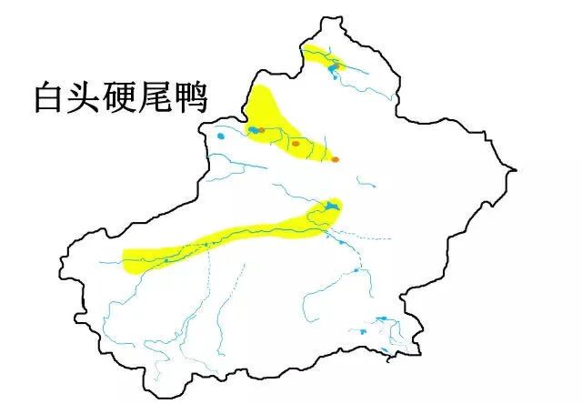 白头硬尾鸭在新疆分布图。图片:兔狲小队长