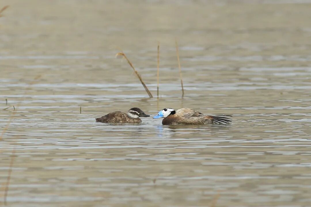 对于中国的白头硬尾鸭种群来说,还有个更好的消息。2017年,新疆观鸟会成员在乌伦古湖发现有白头硬尾鸭,在迁徙季和夏季,有记录到几只或者十余只个体——可惜一直没有记录到幼鸟,无法确定在当地有确切繁殖。2019年迁徙季,当地志愿者更是记录到一百余只白头硬尾鸭。夏季的持续调查最终观测到九对白头硬尾鸭繁殖。