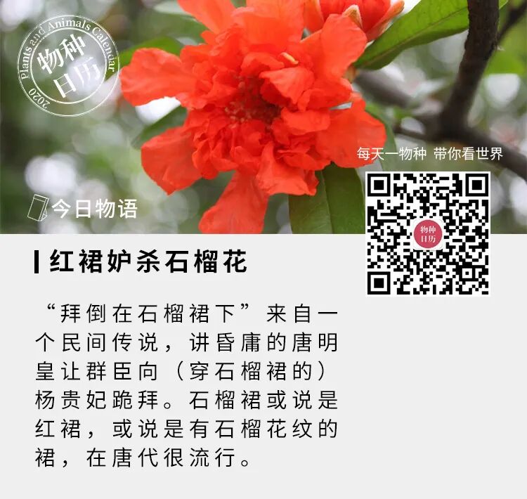 石榴是桃金娘目下的一种植物,与前些天露过脸的桃金娘相似,也是一种落叶灌木(长得高大一些的也可以算是小乔木),叶片呈深绿色窄卵形或者倒卵形,在花期和果期之外就是一株平平无奇的树,不太看得出“风华绝代、万人惊艳”的气质。只有到了花开的时候,石榴的美丽才会展现出来。