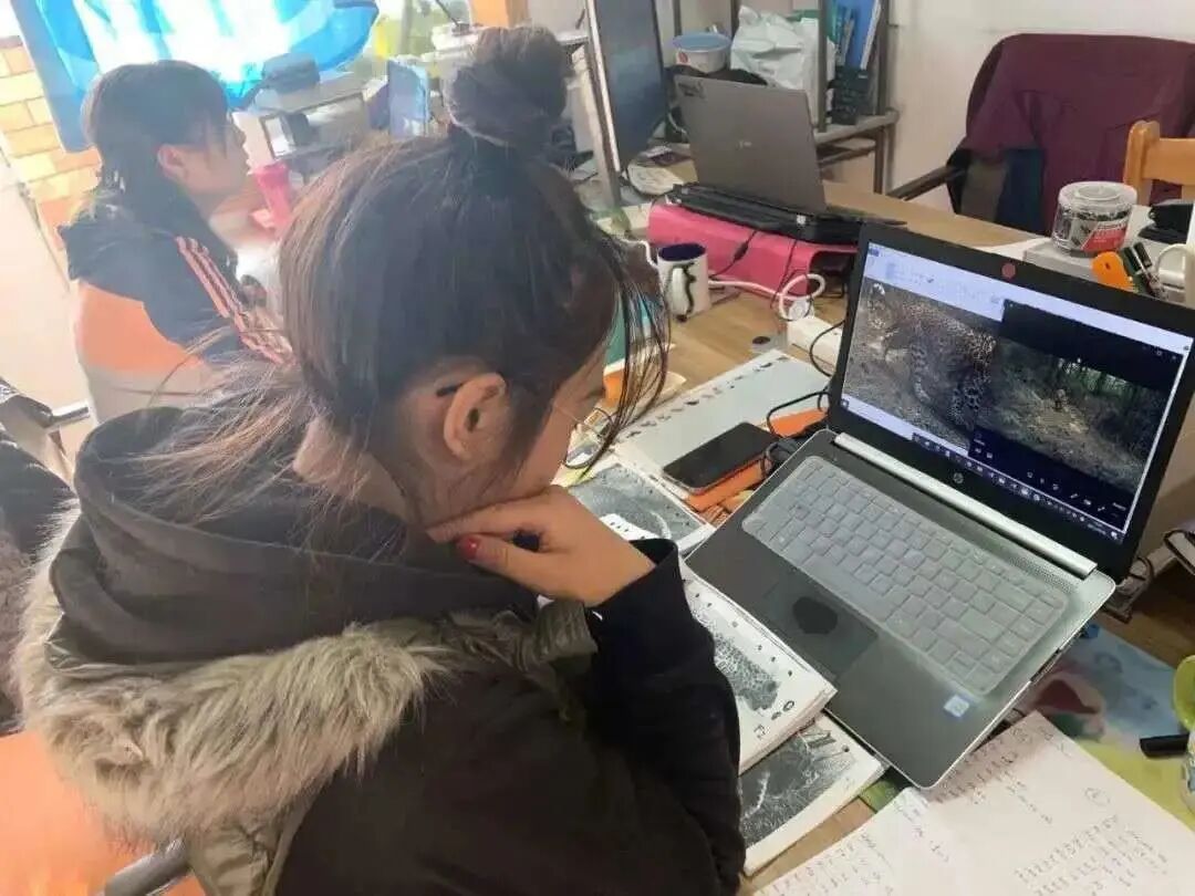 “数据看瞎眼”中……(她们在做金钱豹的个体识别)。图片:猫盟