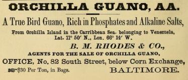 1873年时美国的一则鸟粪广告,“纯正鸟粪,富含磷和碱盐”。图片:Wikimedia