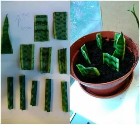 叶插和一般多肉植物用叶片基部进行叶插有所不同。虎尾兰的叶片分生能力较强,所以可以把一片叶片横切成若干长度十厘米的小片,晾干等伤口愈合后作为叶插材料。