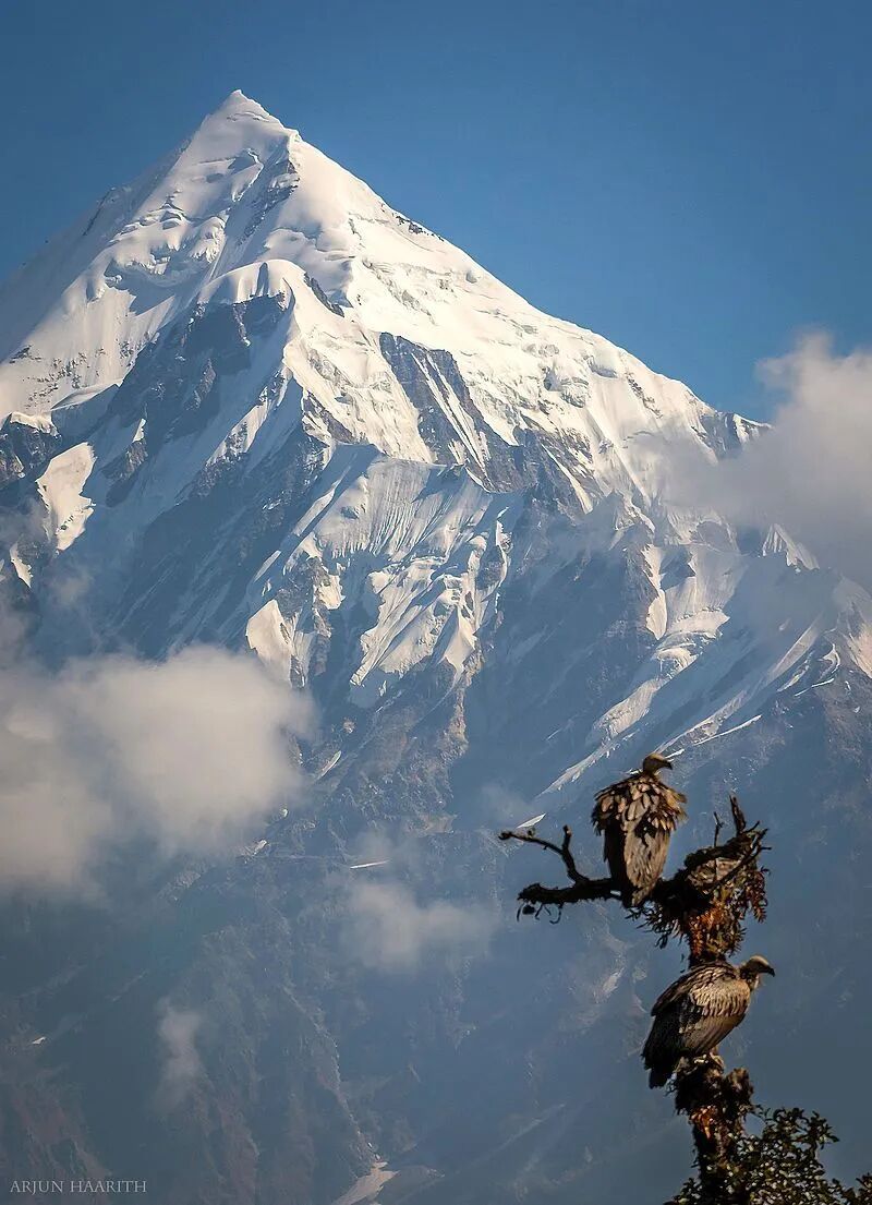面对着攀查术立峰(Panchachuli peaks)的高山兀鹫。图片:Arjunhaarith16 / Wikimedia Commons