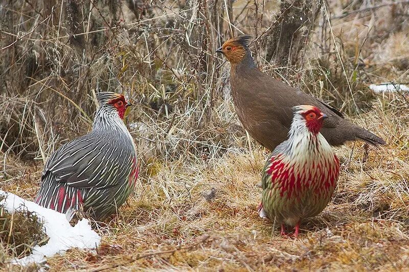 冬春之交,血雉面临着食物短缺的困境。图片:Allan Drewitt / wikimedia