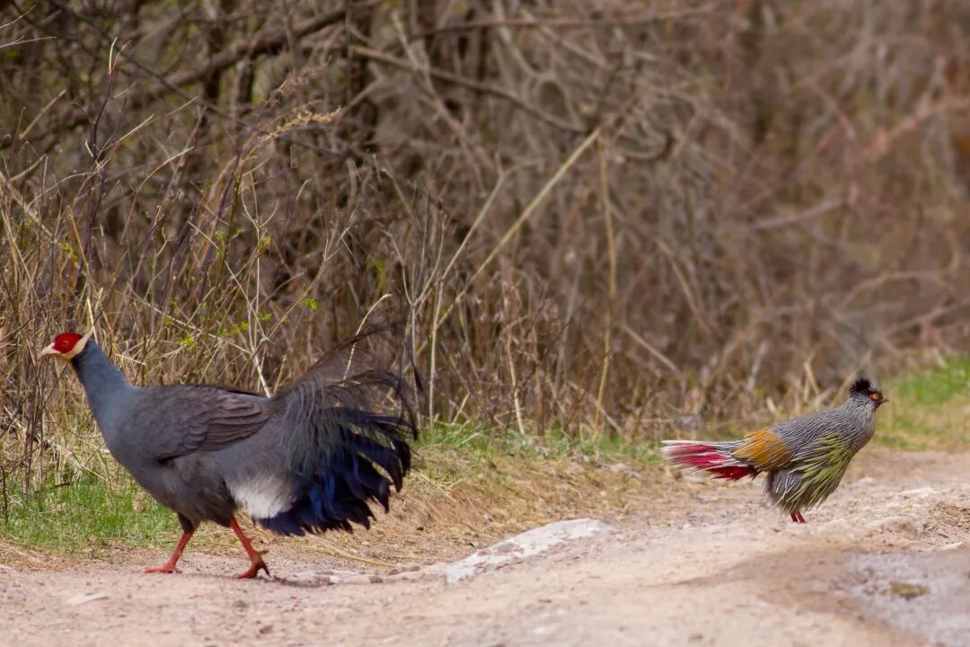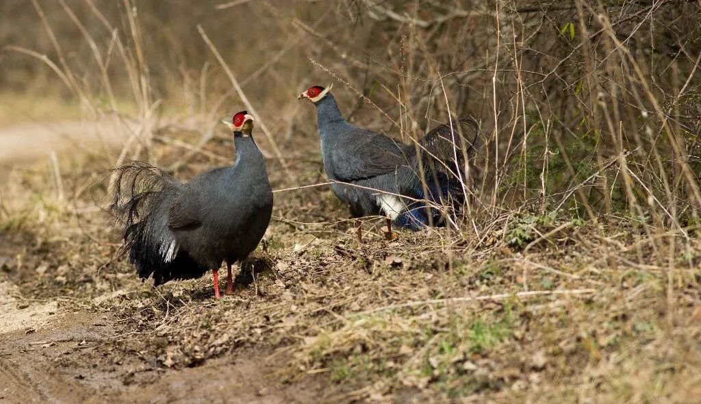 蓝马鸡与后面花哨的血雉。图片:Capt. Z