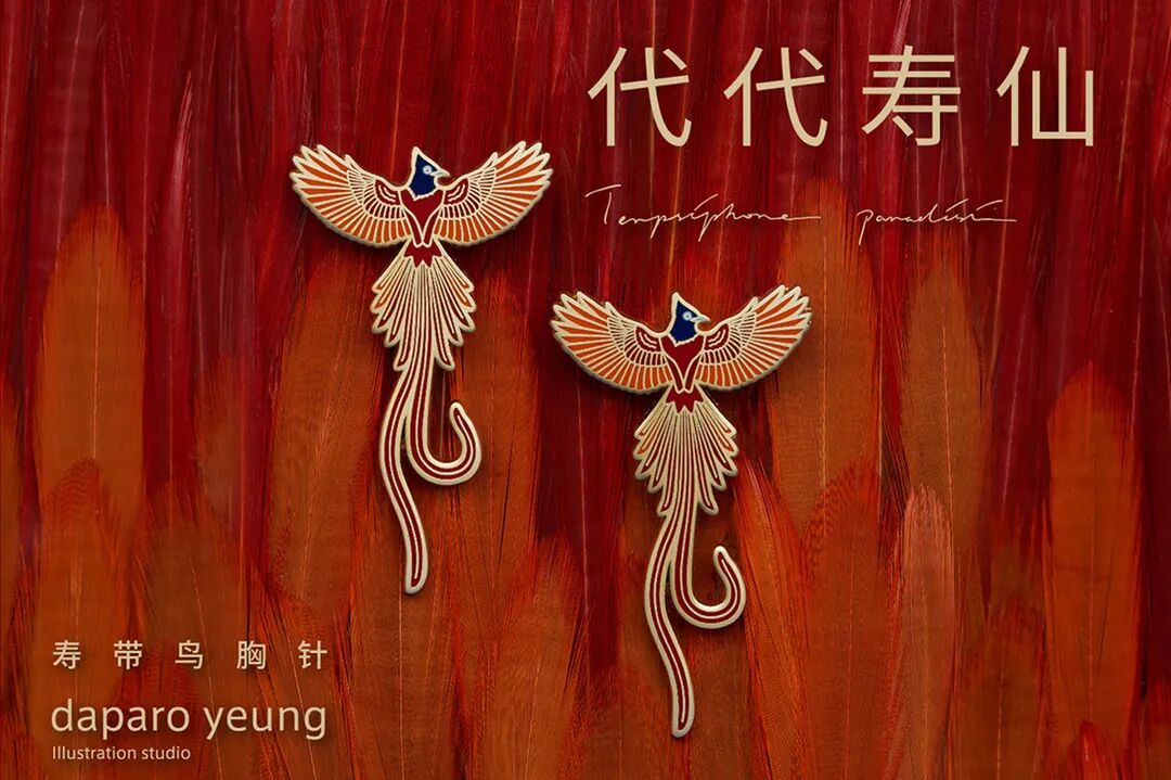 两根形似绶带的超长尾羽,就像在空中飞扬的缎带,暖棕色的余晖涟漪之下又多了几分灵幻气息。