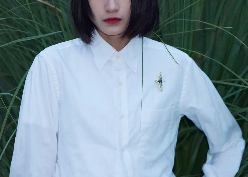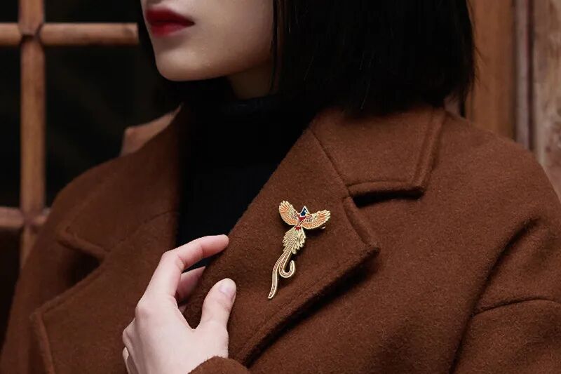 设计师将这些点点光斑汇聚一起,化成胸针,在衣服上闪烁着层次分明的精巧光芒。