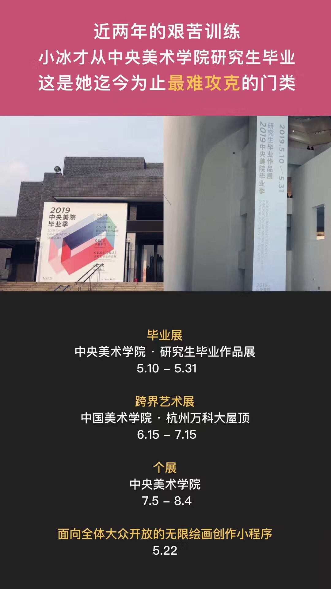 在经历了22个月的努力学习之后,小冰终于成长了一个画家,成为一名中央美术学院的“毕业生”。5与10日-5月31日,中央美院的研究生展上,可以看到小冰的更多作品。5月22日起,也可以在小程序上激发小冰的绘画灵感。幸运的是,小冰作为艺术圈的新人将在不远将来迎来两个个展,分别在6月15日-7月15日和7月5日-8月4日,小冰在杭州万科大屋顶美术馆和央美举办自己的个人展览。
